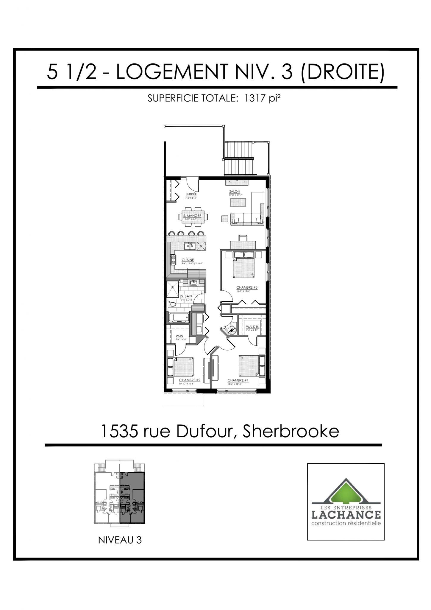 Logement luxueux situé sur le Boulevard René-Lévesque dans un emplacement de choix entre St-Élie et Rock Forest, à deux pas de tous les services, près de la nouvelle école primaire de la Croisée.