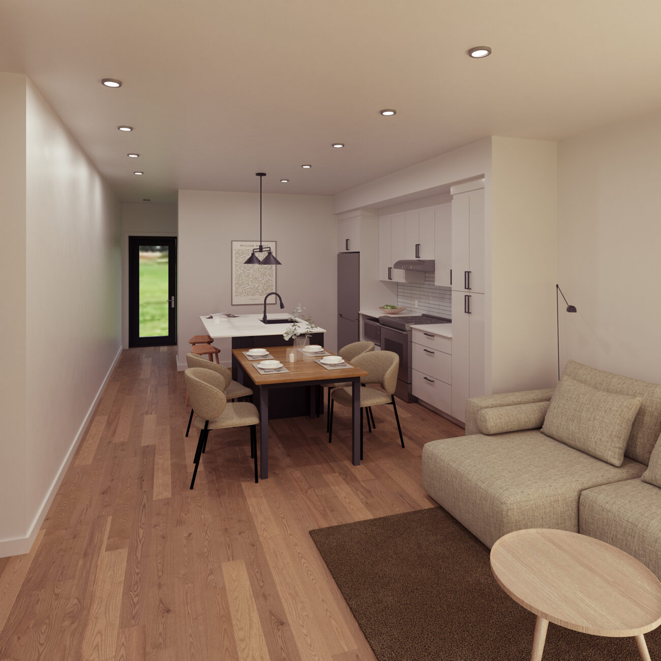 - Table de salle à manger intégrée à l'îlot de cuisine
