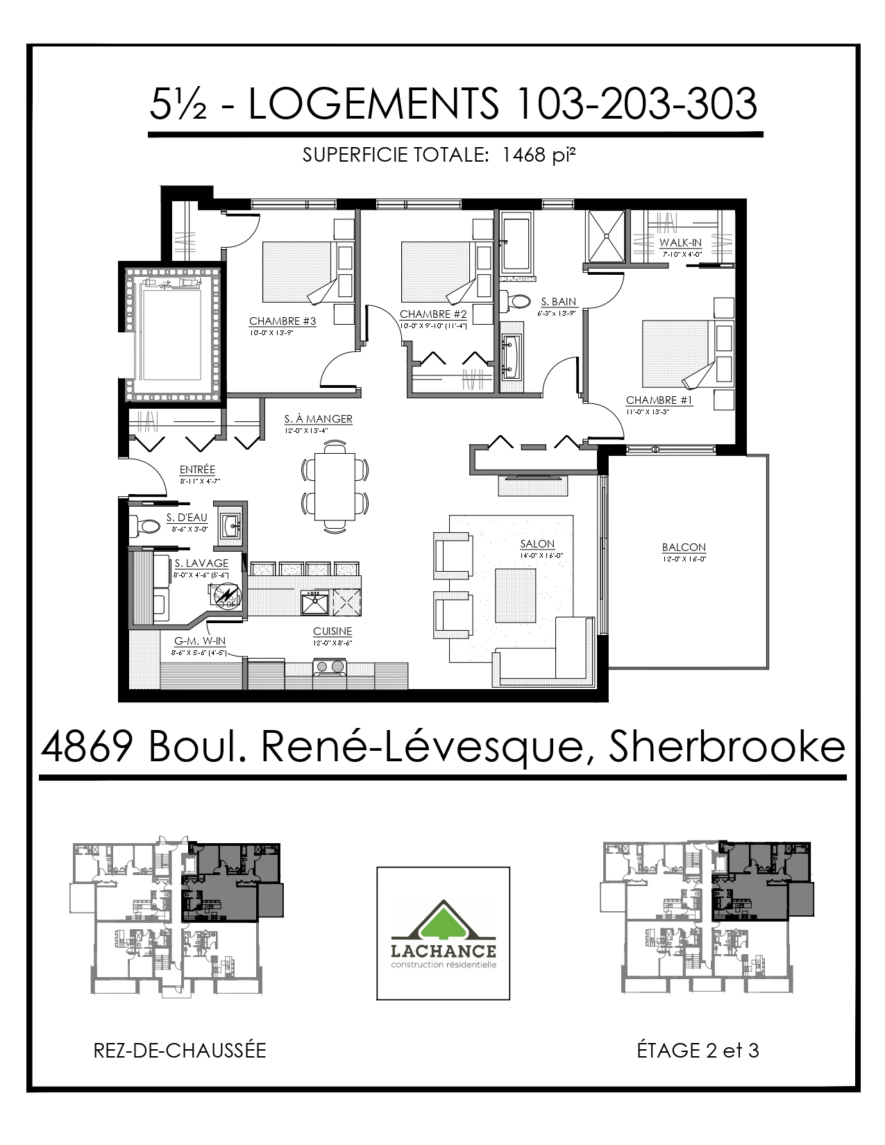 Logement luxueux situé sur le boulevard René Lévesque dans un emplacement de choix entre Saint-Élie et Rock Forest, à deux pas de tous les services et près de la nouvelle école primaire de la Croisée.