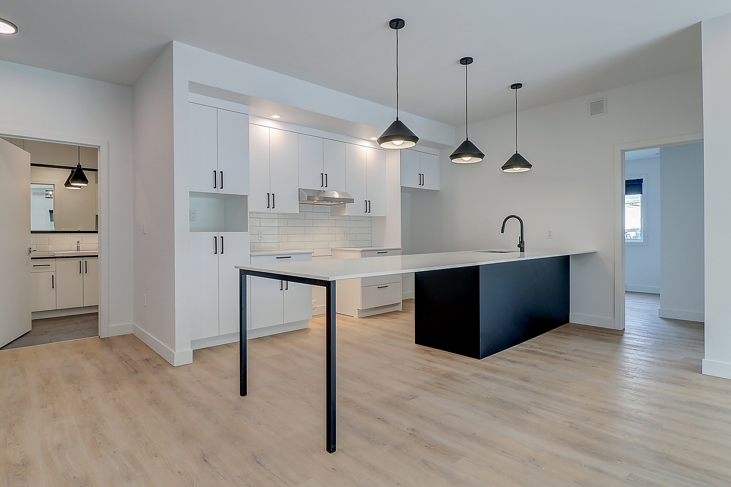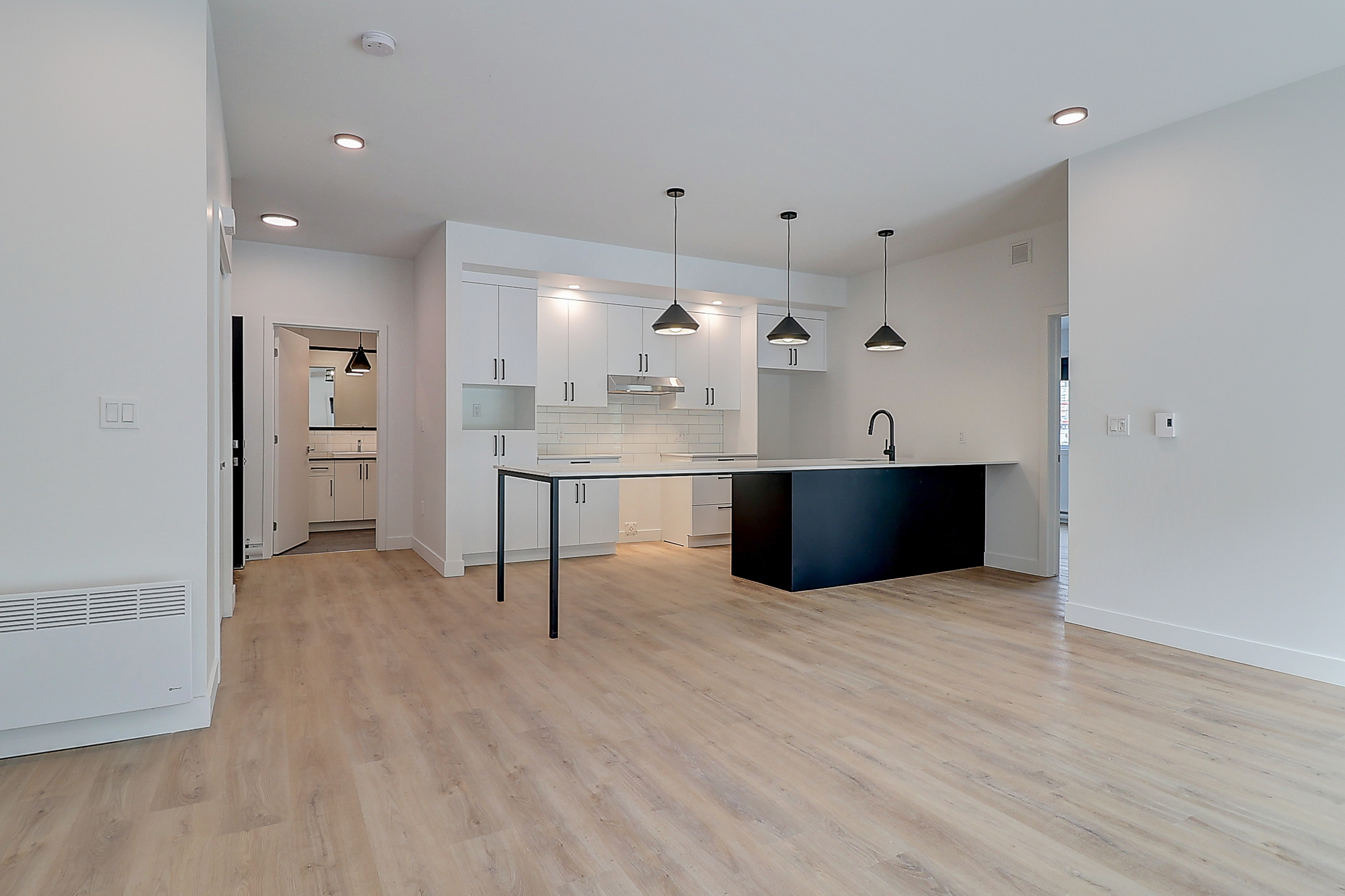-Cuisine ultra-moderne avec comptoir en quartz et dosseret