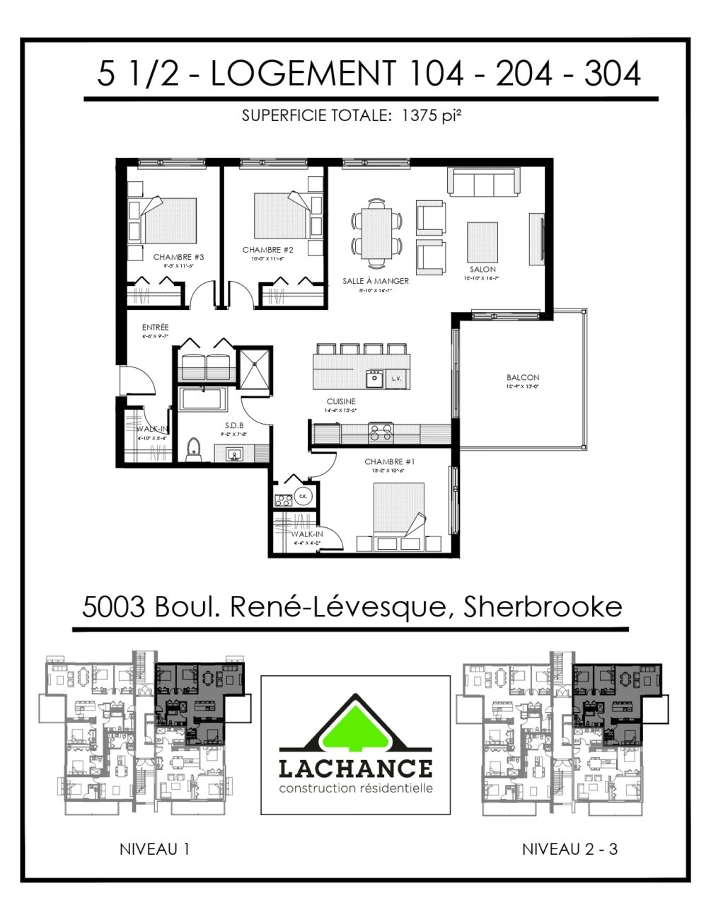 Logement luxueux situé sur le boulevard René Lévesque dans un emplacement de choix entre Saint-Élie et Rock Forest, à deux pas de tous les services et près de la nouvelle école primaire de la Croisée.