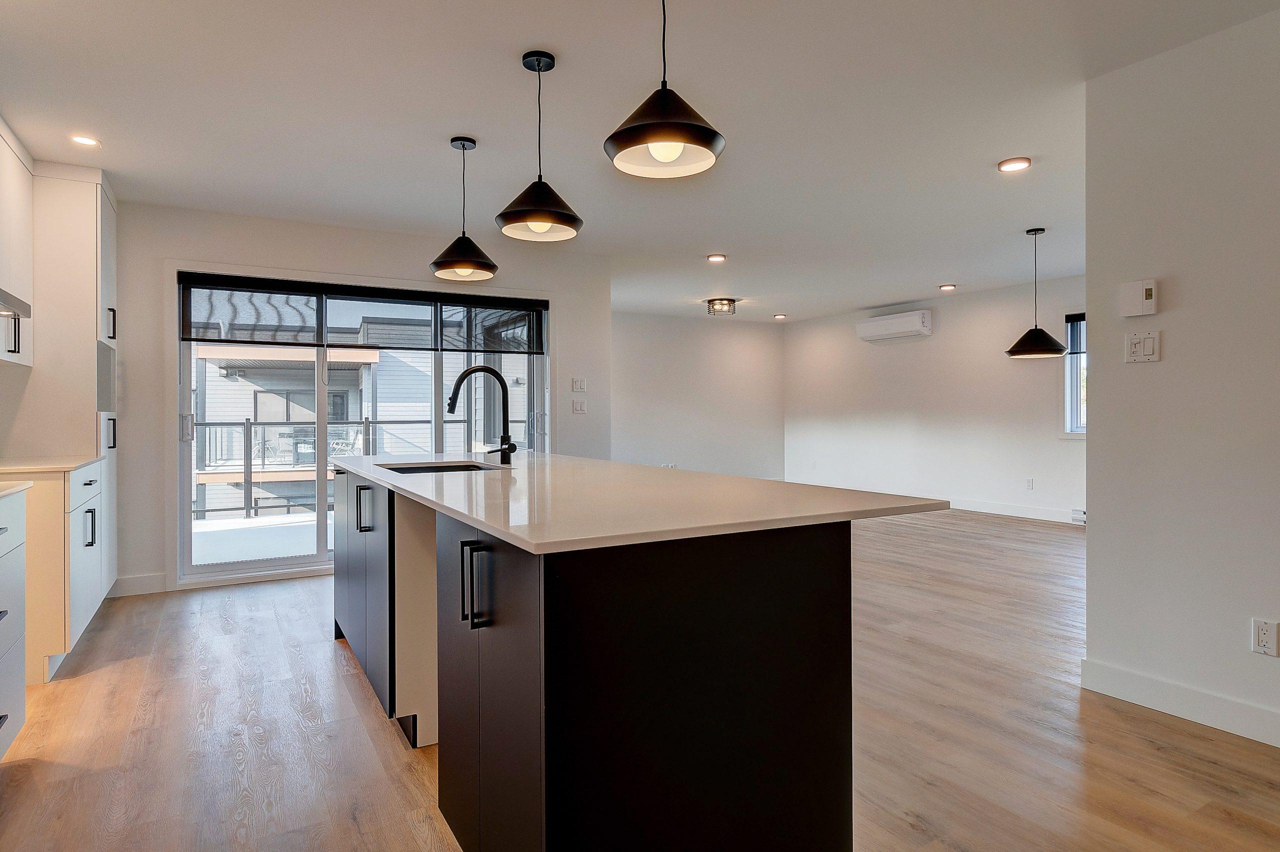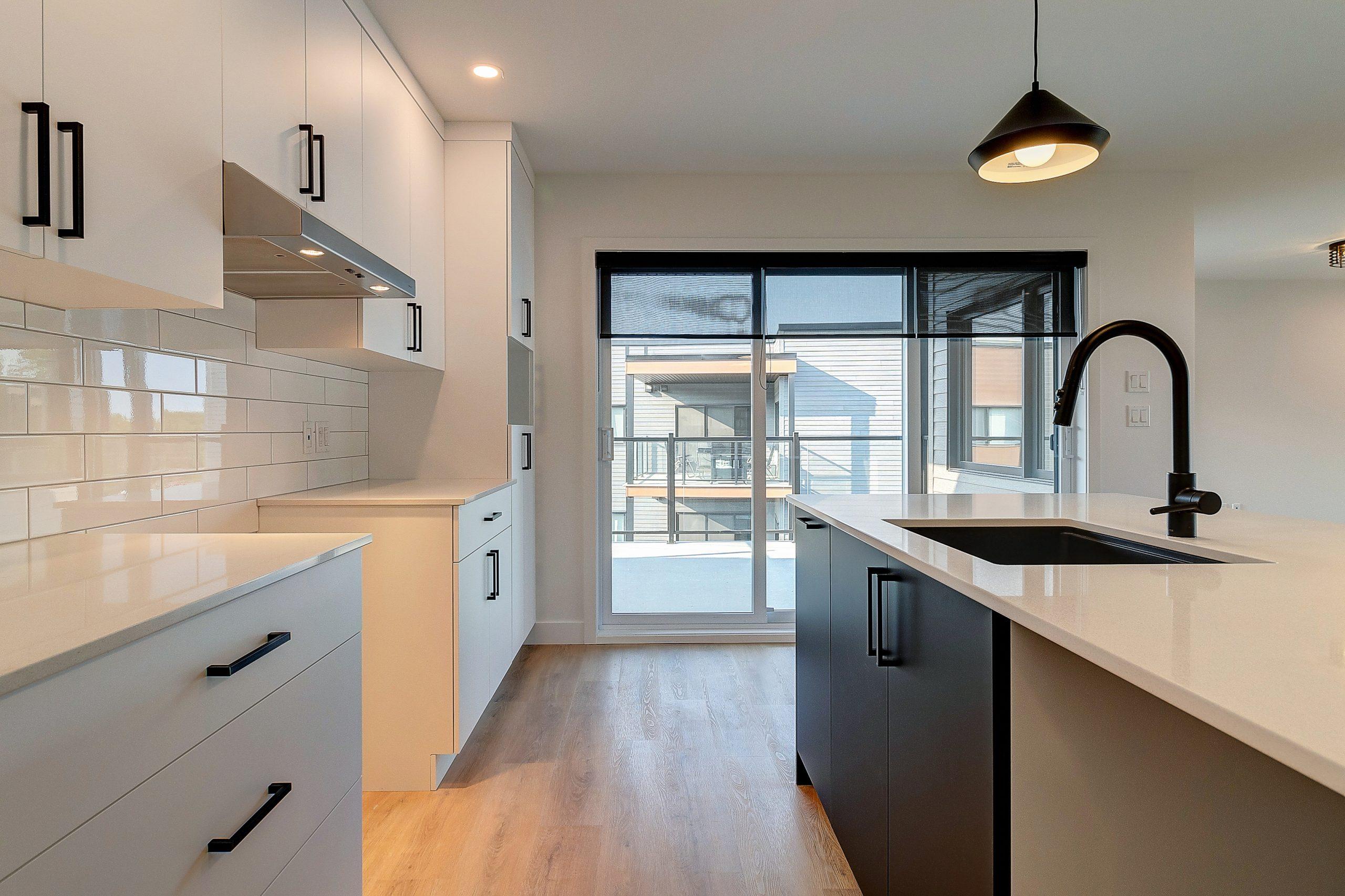 -Cuisine ultra-moderne avec comptoir en quartz et dosseret