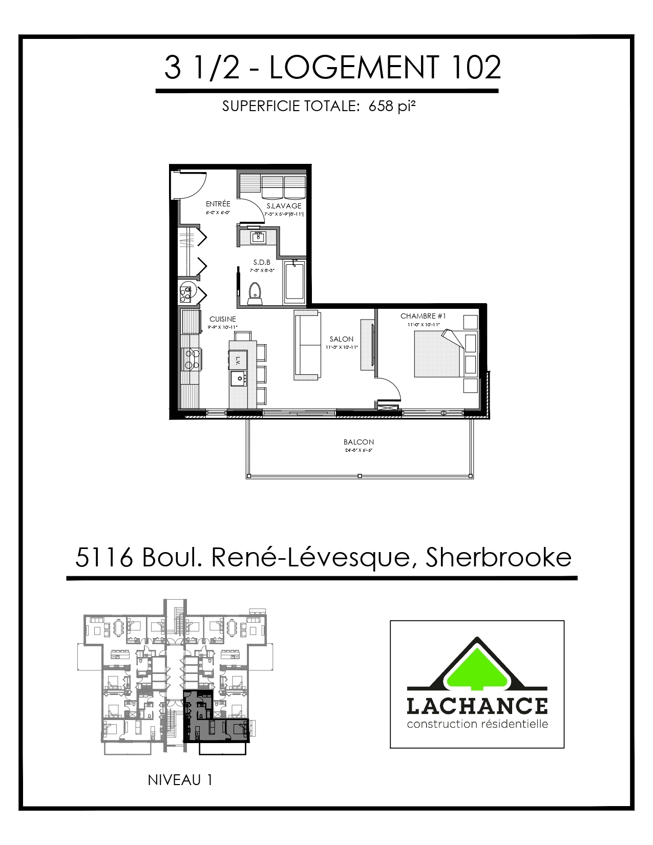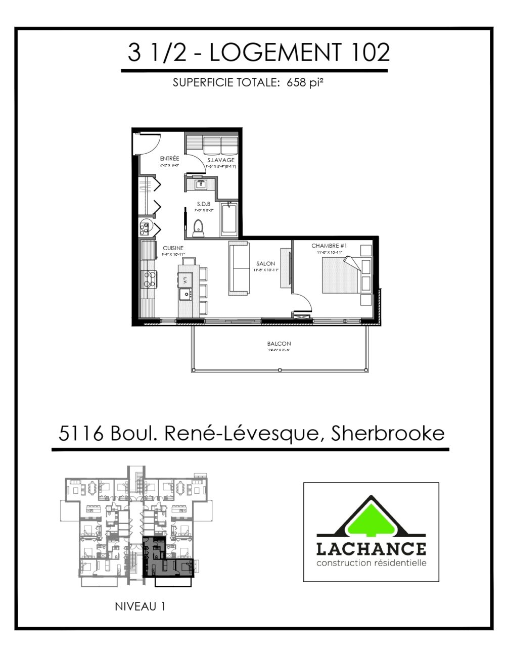 Logement situé sur le boulevard René Lévesque entre Rock Forest et Saint-Élie près de tous les services et de l’école primaire de la Croisée.