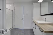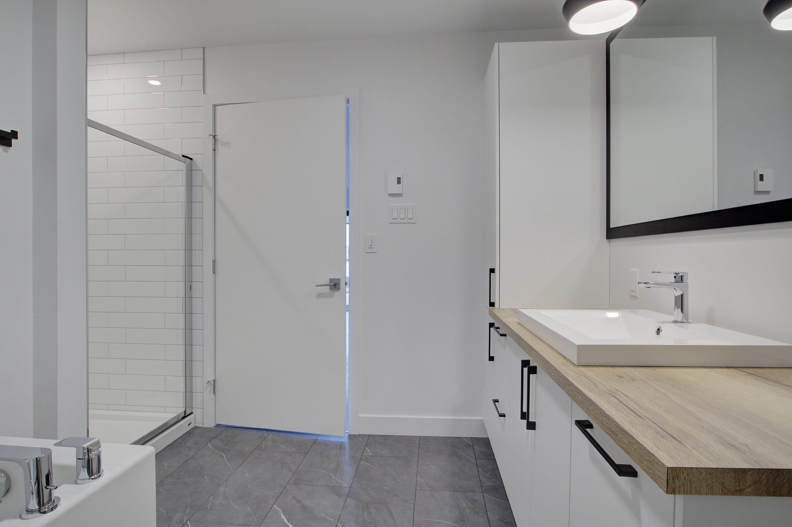 -Salle de bain avec douche en céramique et bain indépendant