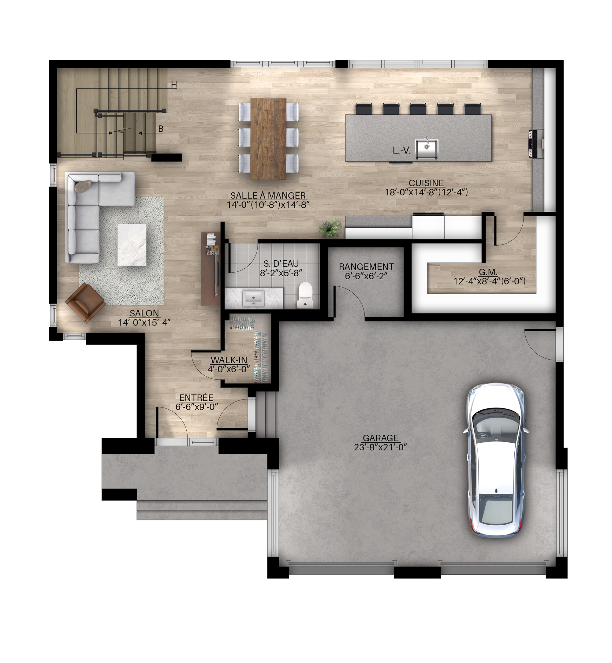 Rez-de-chaussée : 1 075 pi2