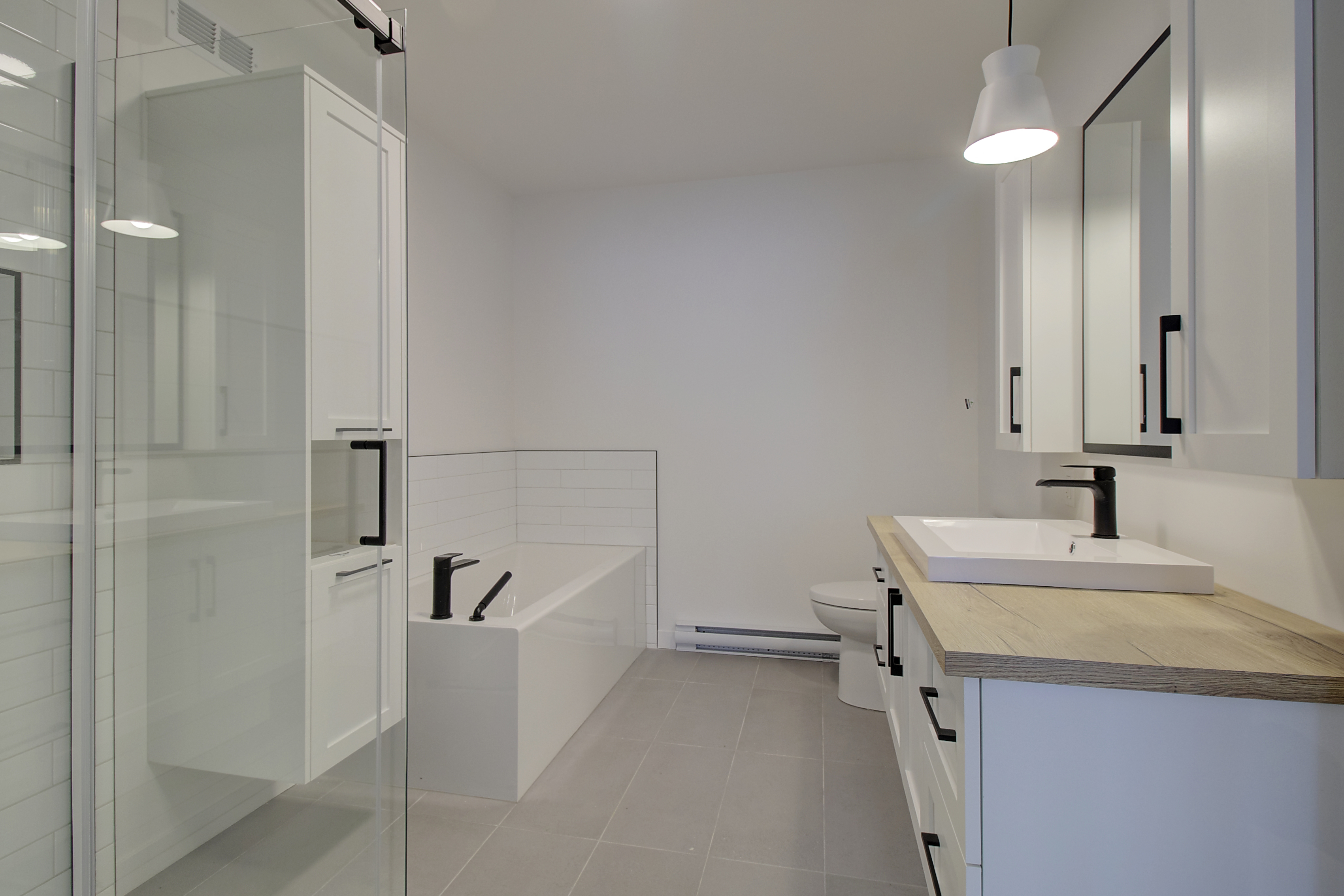 Revêtement de plancher en vinyle clic style bois et céramique au rez-de-chaussée