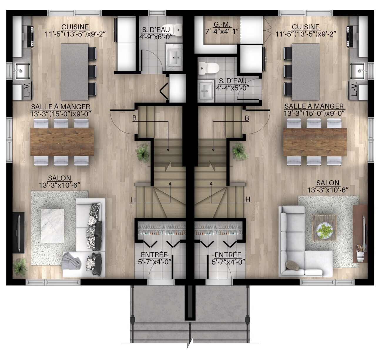Type d'habitation : Jumelé 2 étages