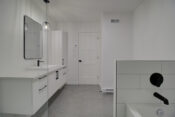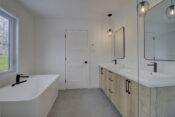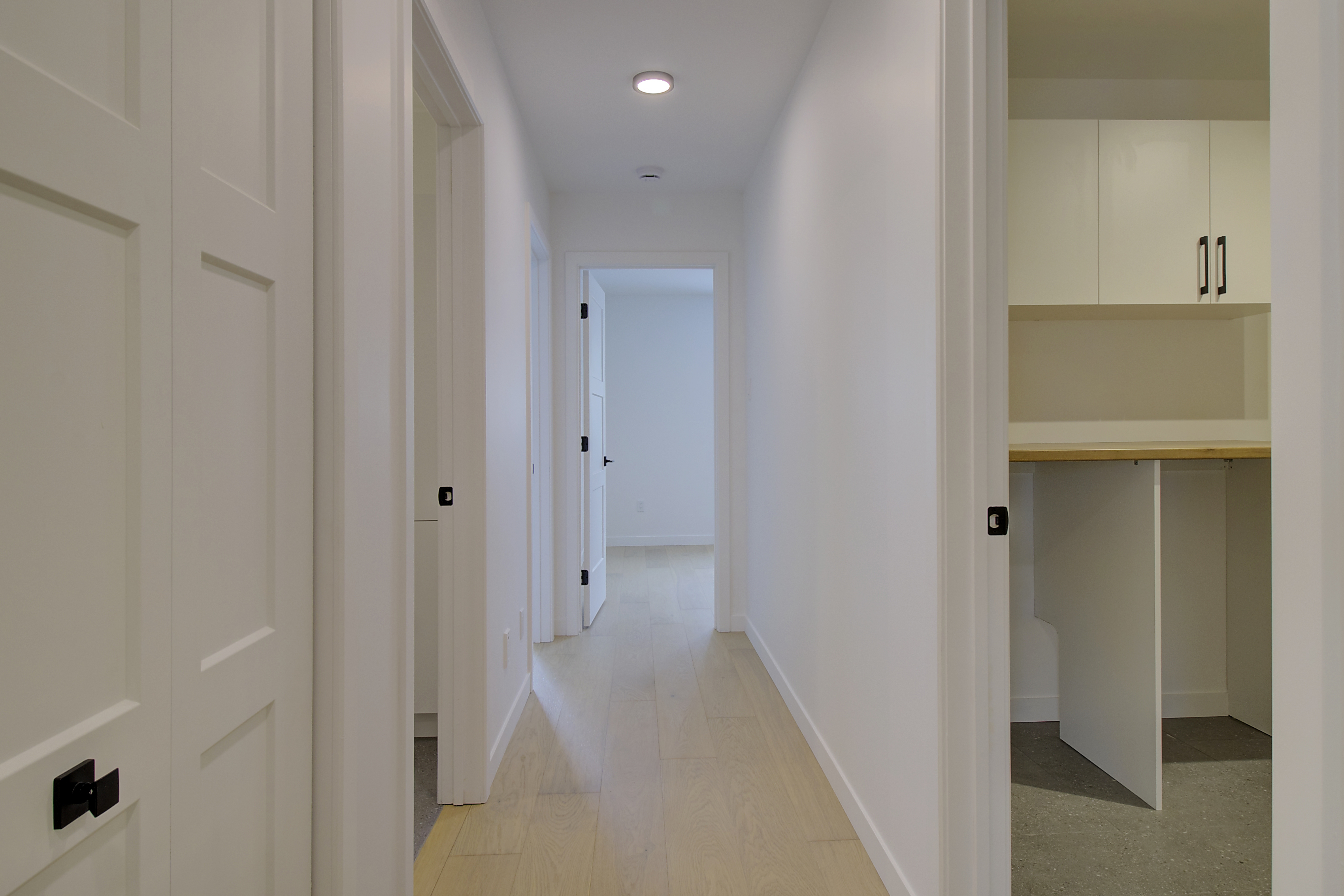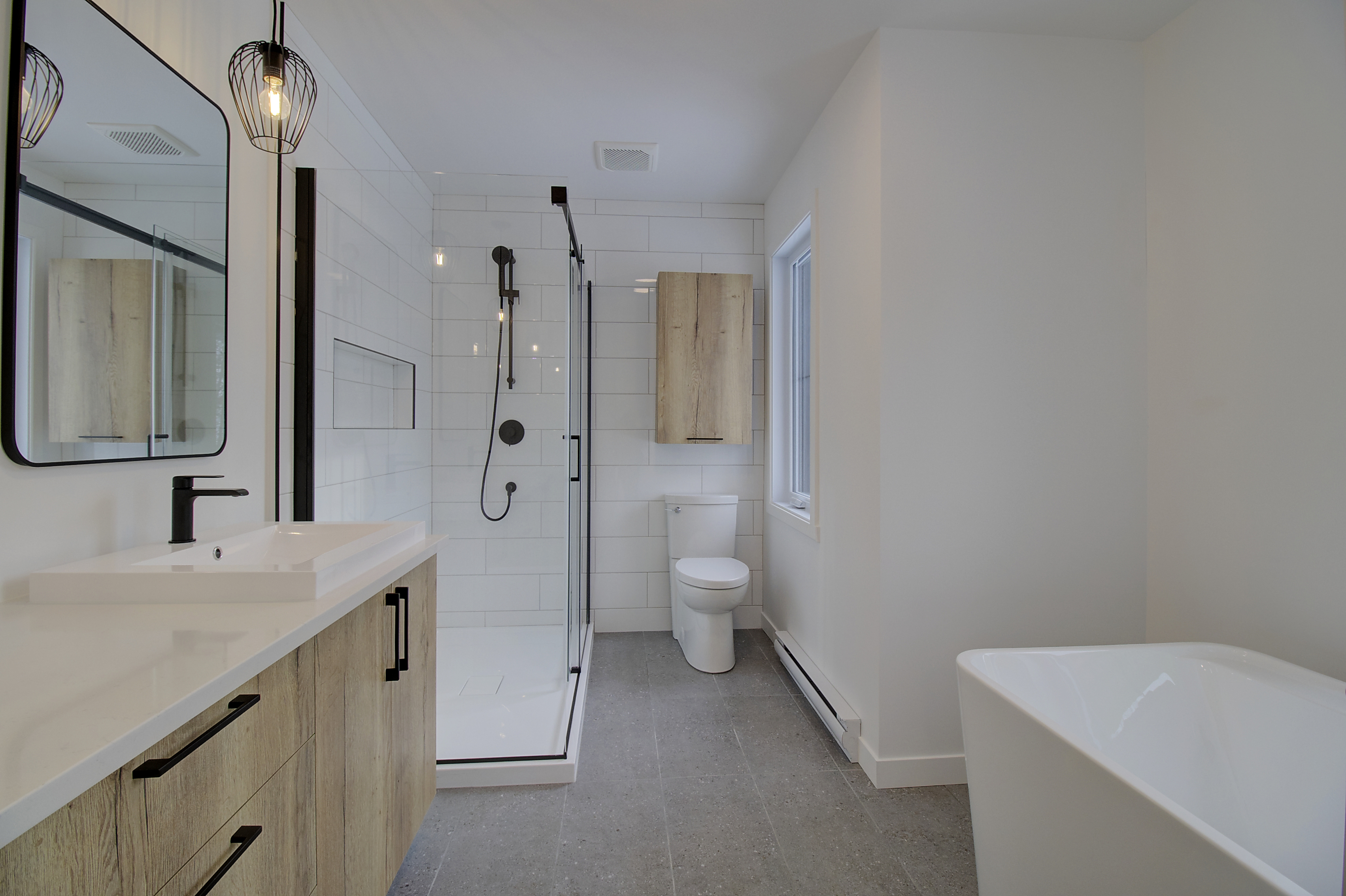 Revêtement de planchers en bois franc et céramique à l'étage