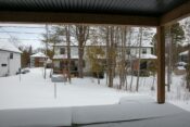Patio couvert en fibre de verre avec rampes d’aluminium