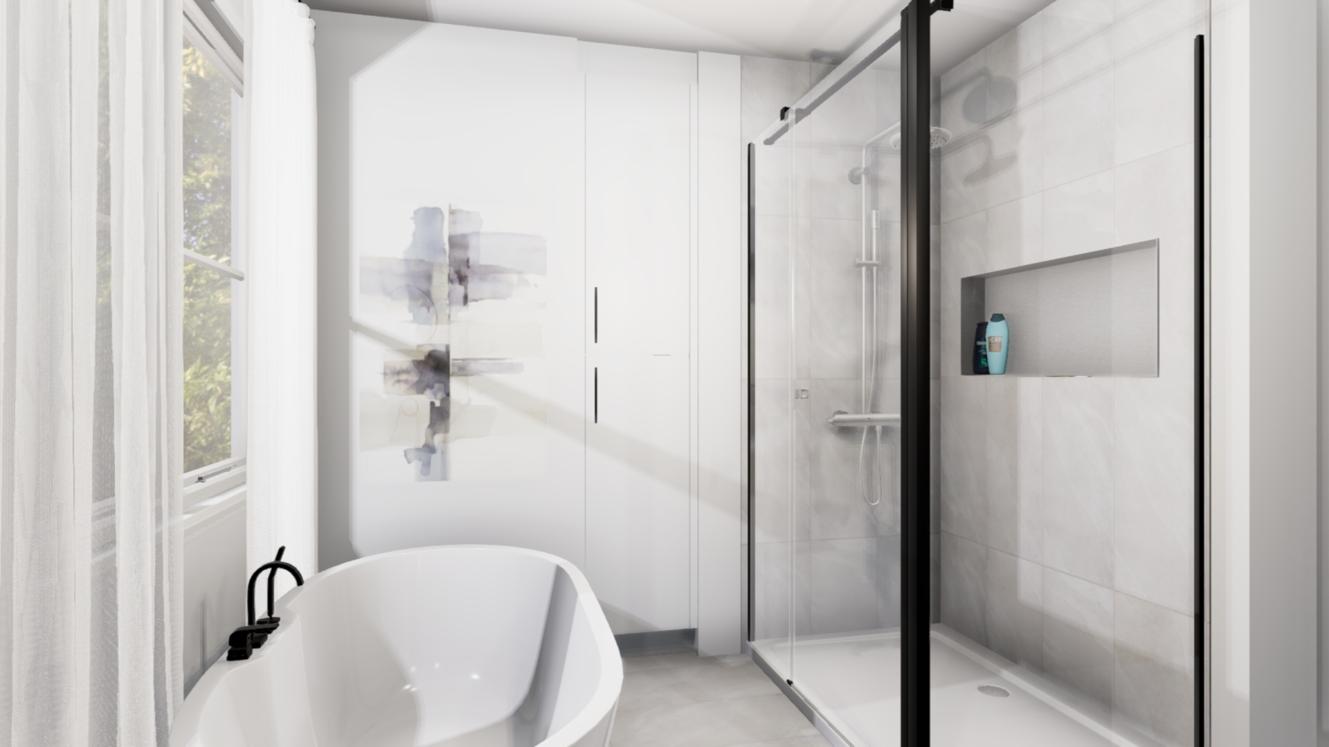 Niche dans la douche en céramique