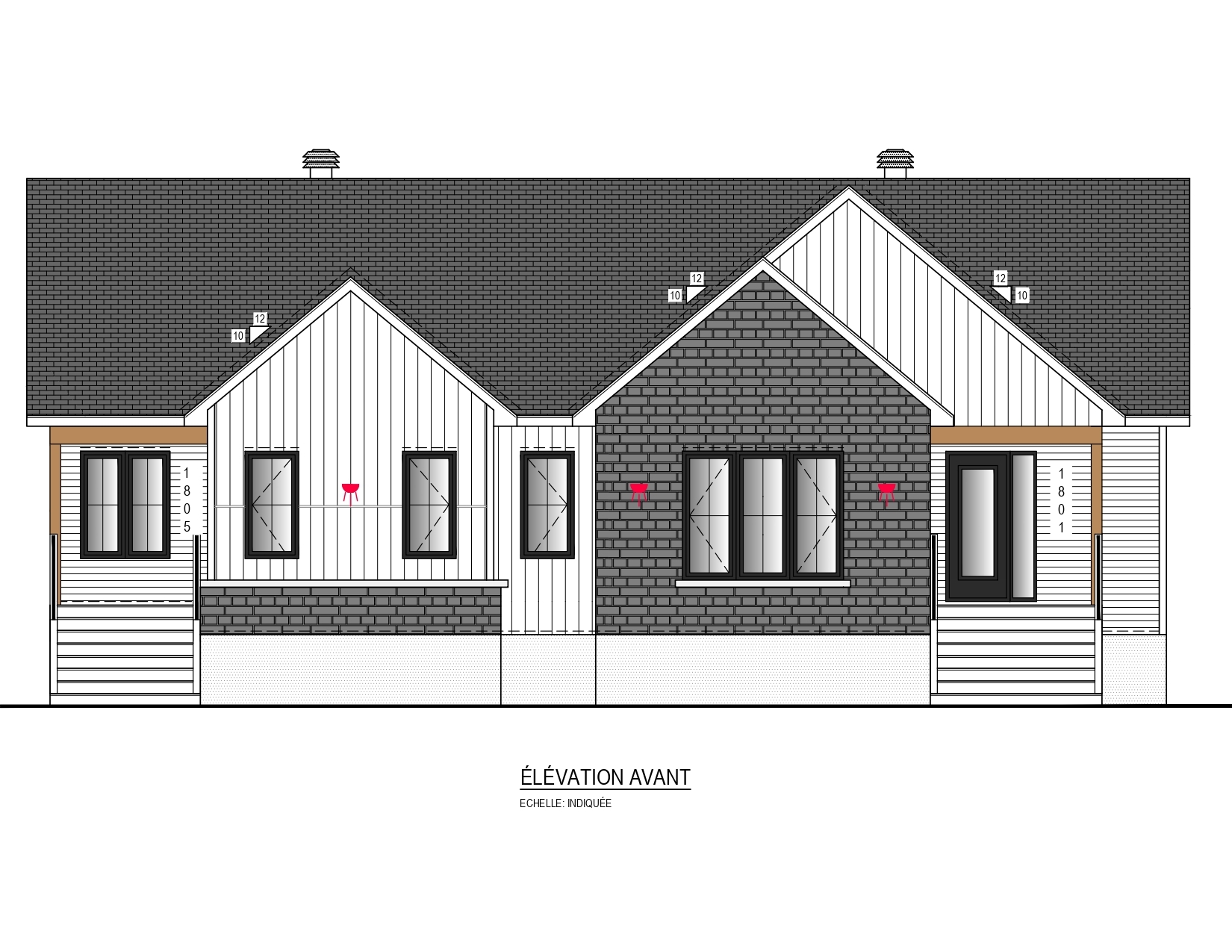 Vinyle verticale, brique, pierre, fibrociment, bois ou acier à l'avant (partiellement obligatoire)