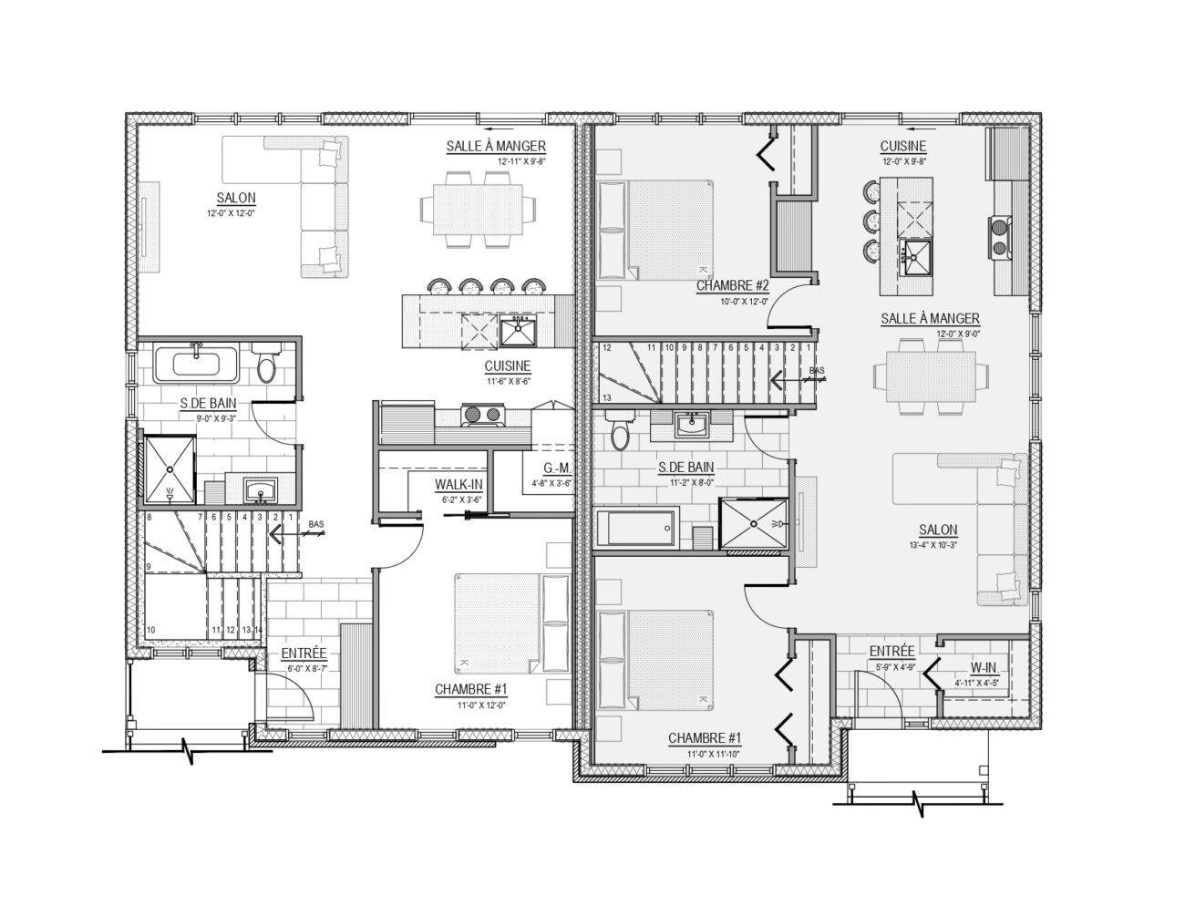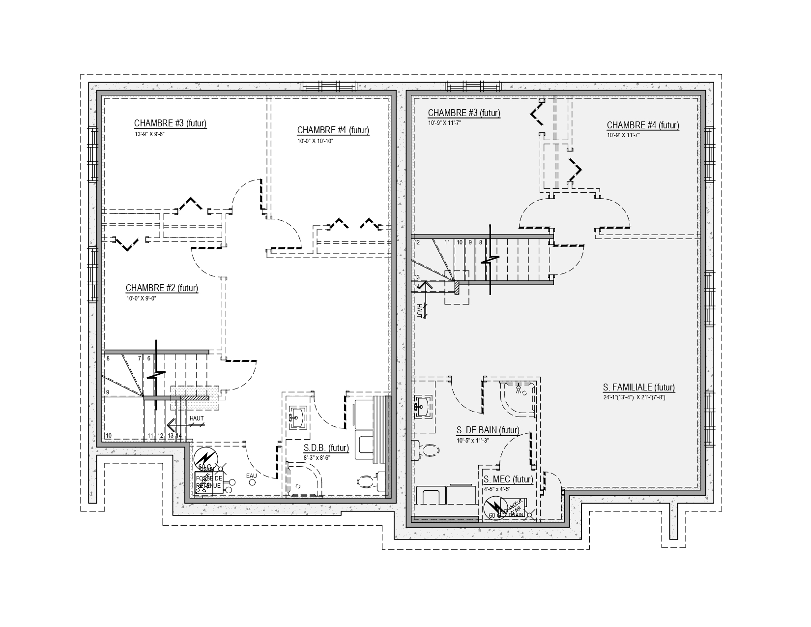 - superficie minimum : 1 étage : 1200 pi2 - 2 étages : 850 pi2
